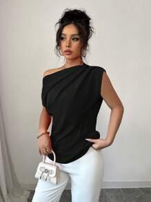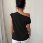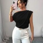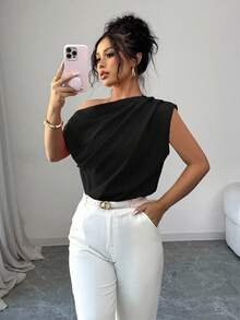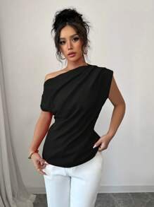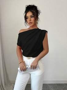 Elenzga Blusa de viaje elegante de mujer con volantes en los hombros y color liso.